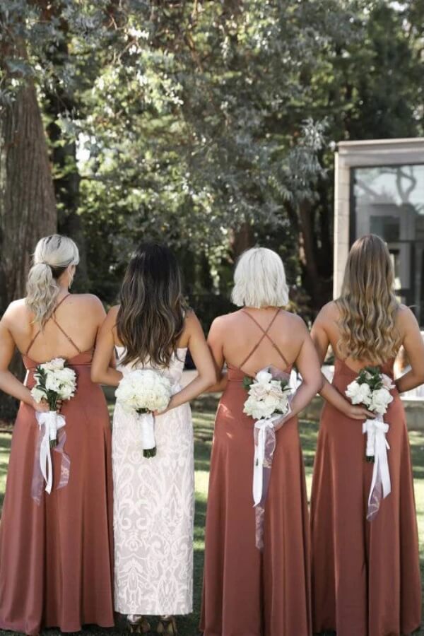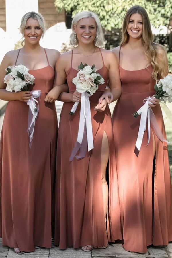 - Dusty Rose Chiffon A Line Square Neck Front Slit Bridesmaid Dresses, MBD313