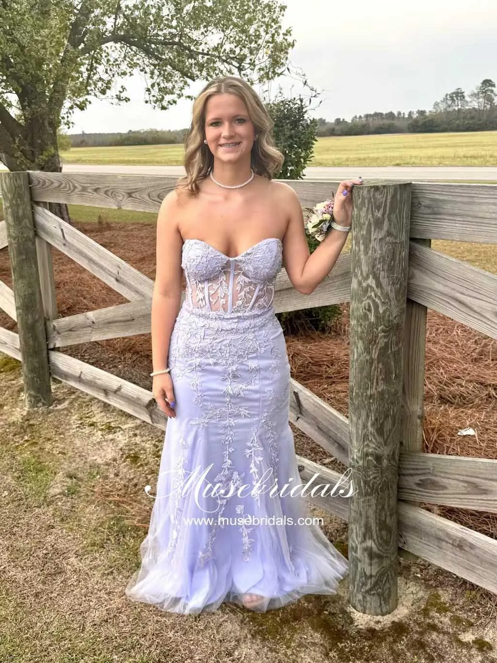 Purple Mermaid Sweetheart Neck Long Prom Dresses With Lace Appliques, MP752
