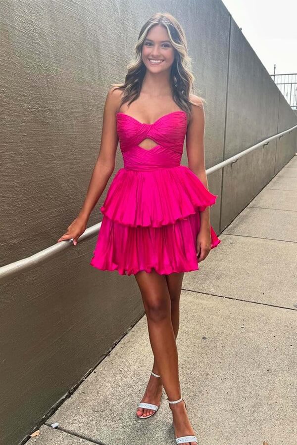 Chiffon A Line Strapless Keyhole Short Homecoming Dress, Graduation Dress, MH693