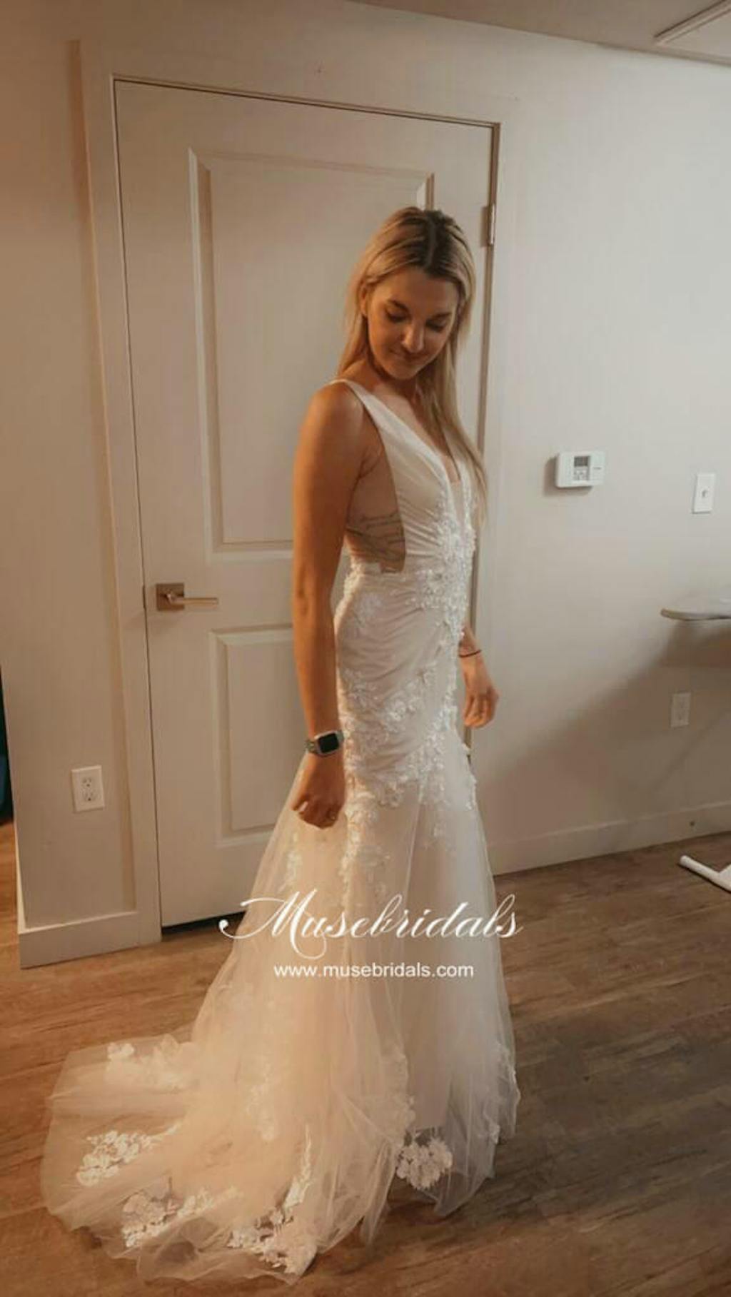 Tulle Lace Mermaid V Neck Wedding Dresses, Beach Wedding Dress, MW543